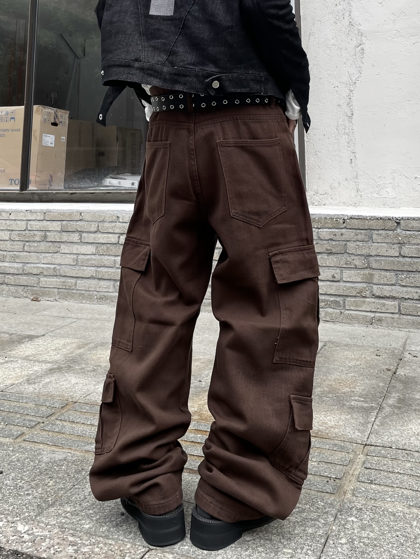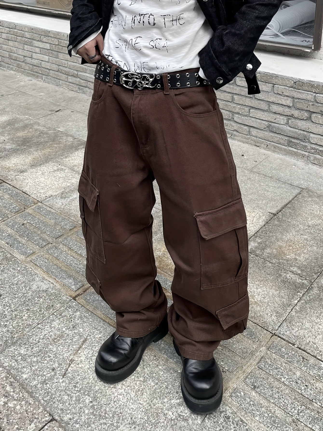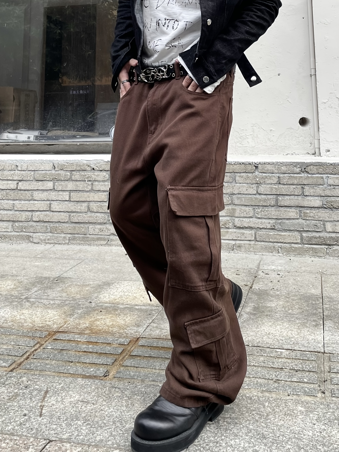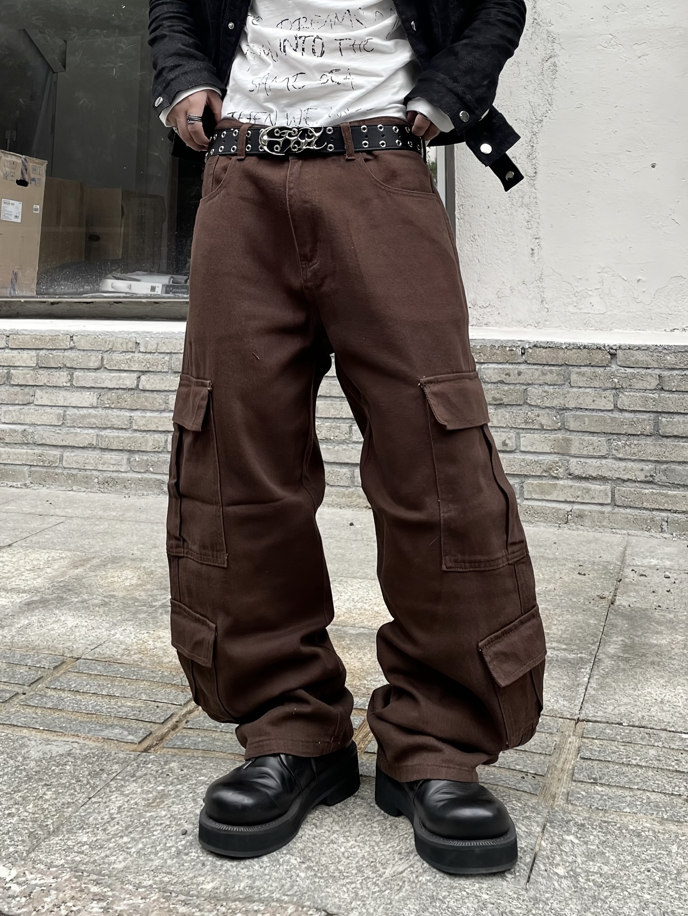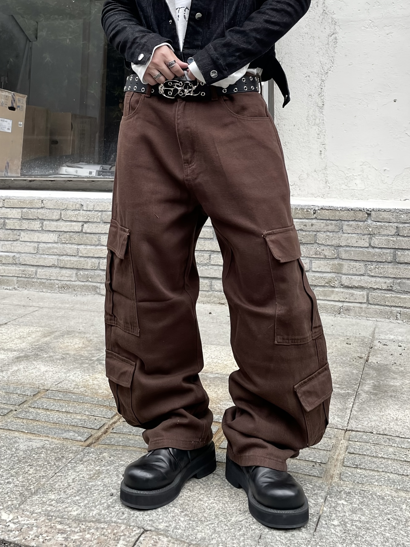 1pc Men'S Casual Loose Fit Cotton Jeans with Multiple Pockets, All-Season Solid Color Woven Denim, Regular Length Workwear Style Pants