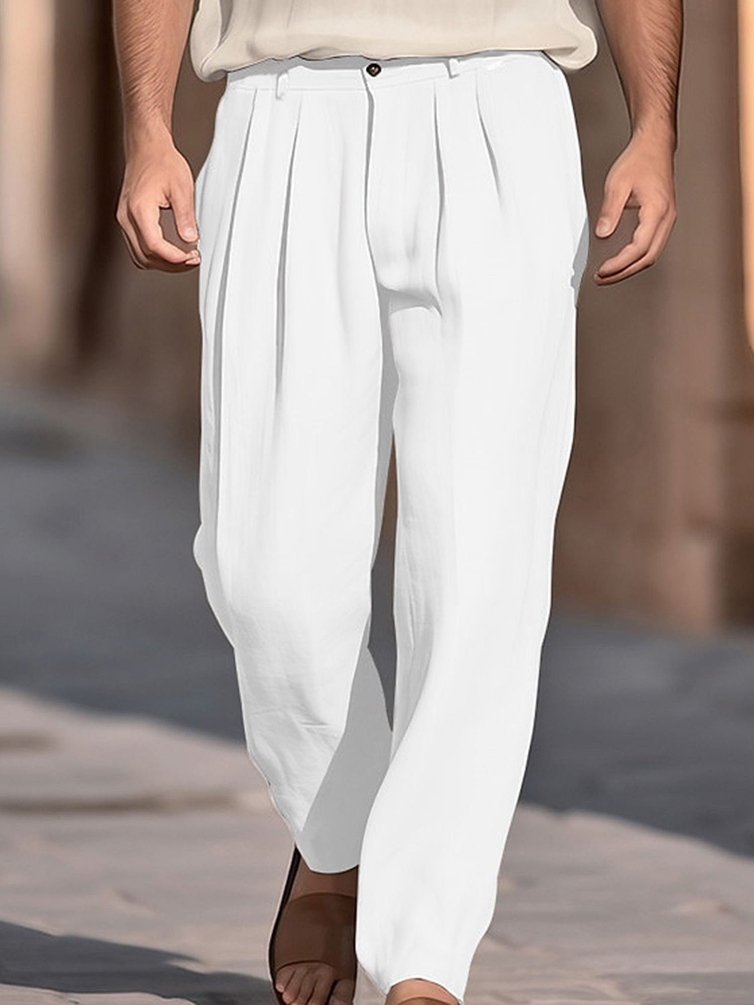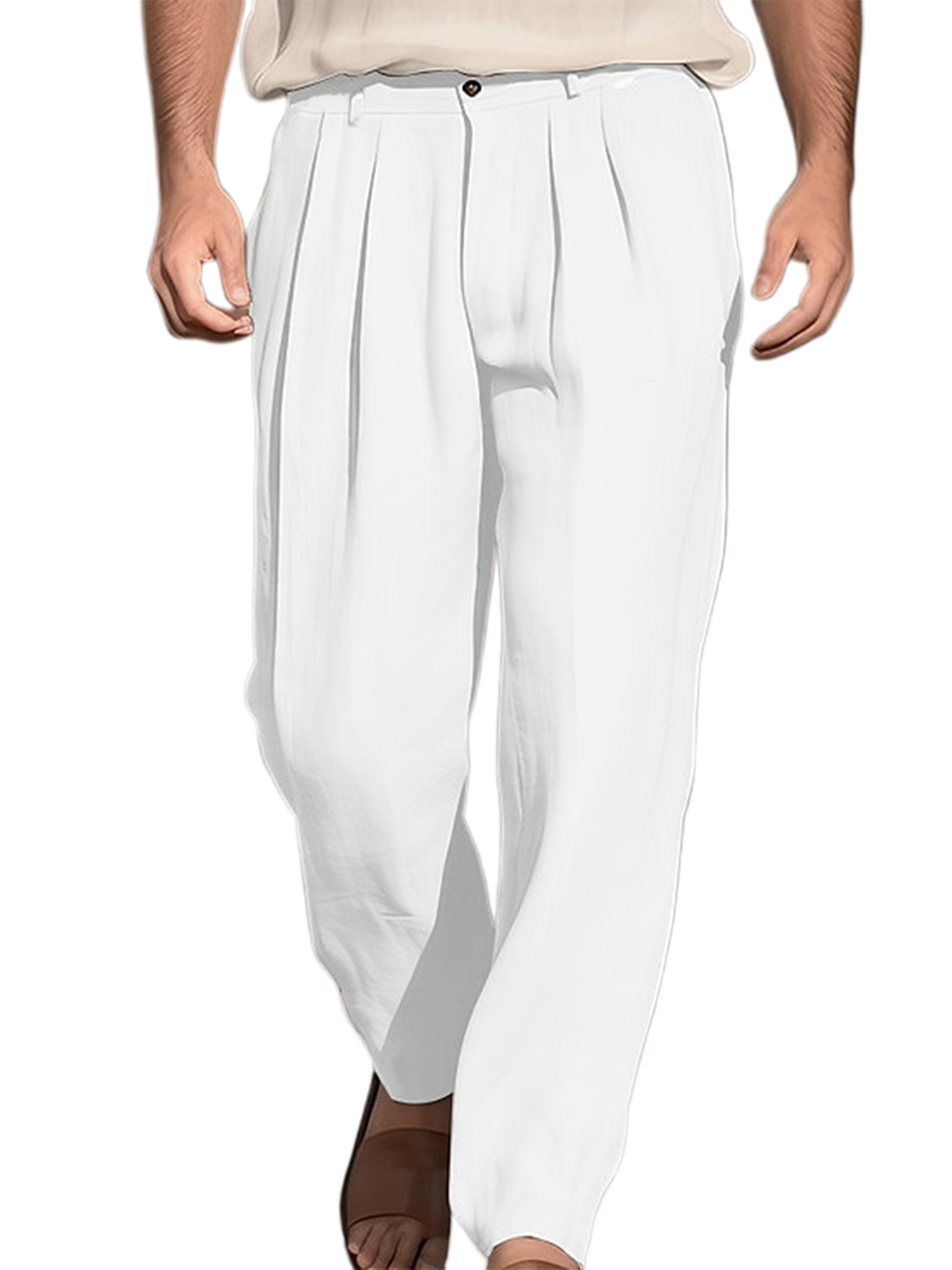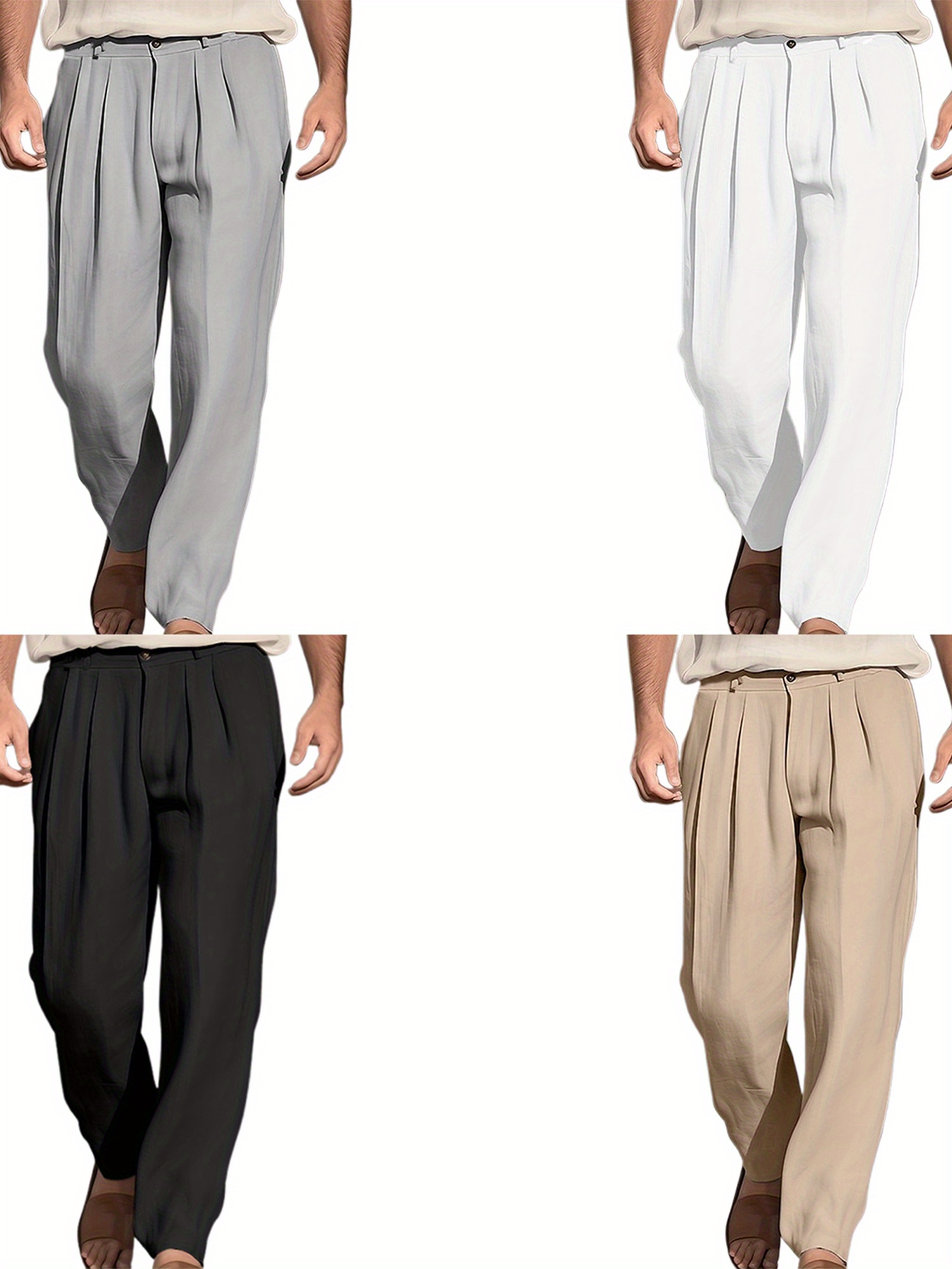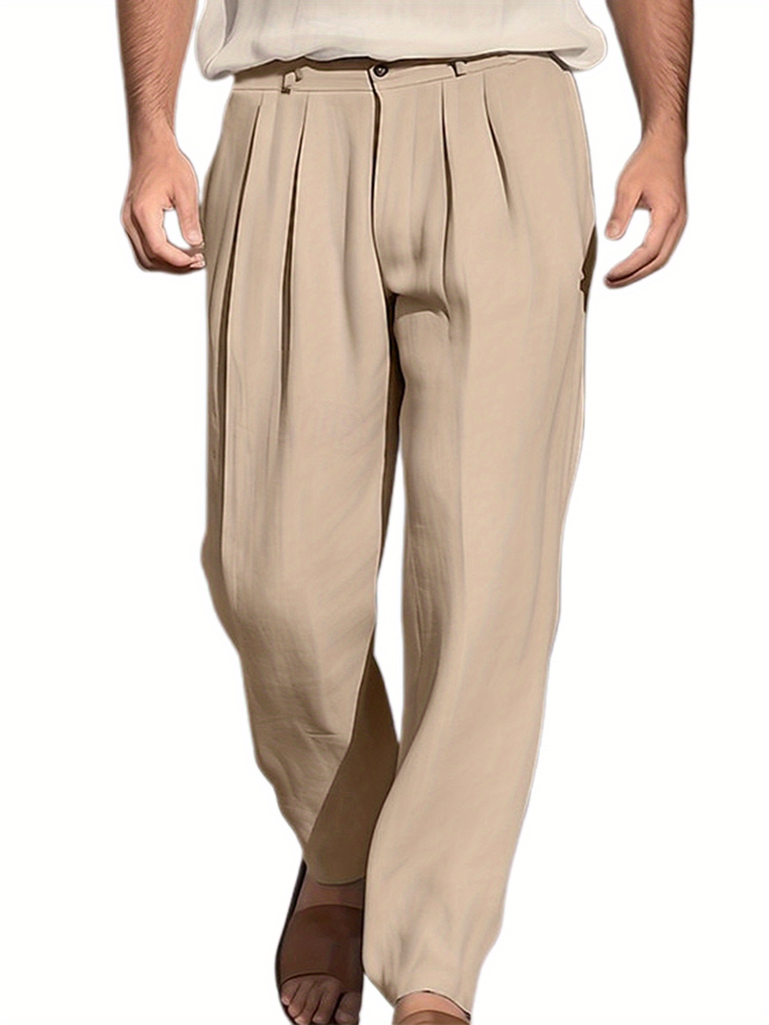 1pc Men'S Casual Wide Leg Pants - Cotton Blend, Solid Color, All-Season, Regular Fit, Slight Stretch, Woven Fabric, Mid Waist with Drawstring and Pleated Front - Versatile for Beach and Daily Wear