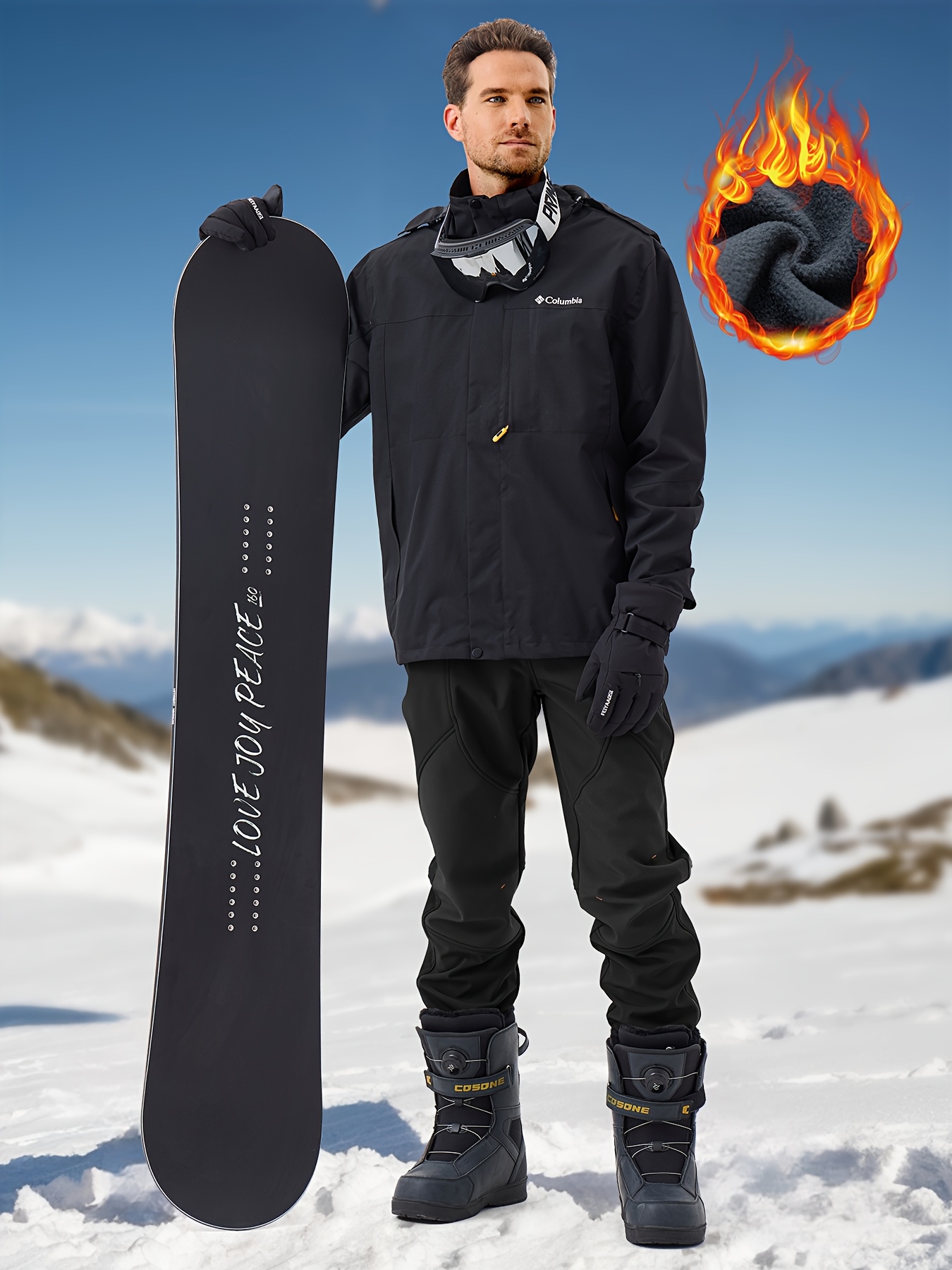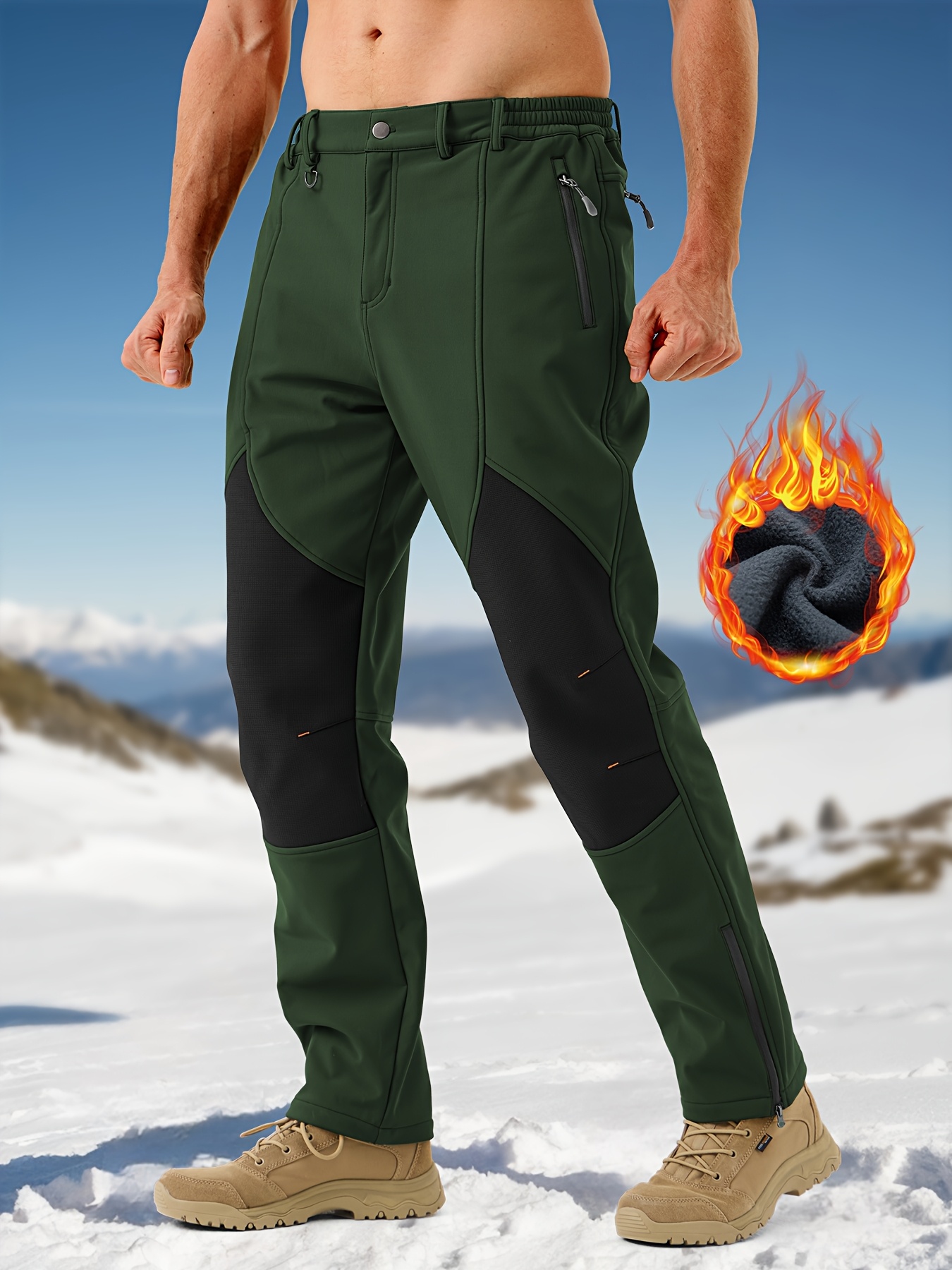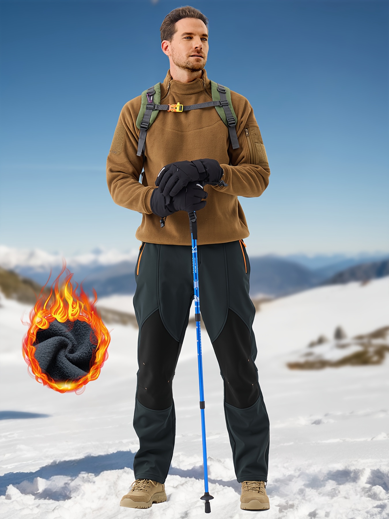 1pc ZUTY Men'S Fleece-Lined Waterproof Ski Pants, Softshell Color Block Sports Style with Zipper, Slight Stretch Polyester, Regular Fit for Snowboarding, Hiking - Woven Outdoor Trousers