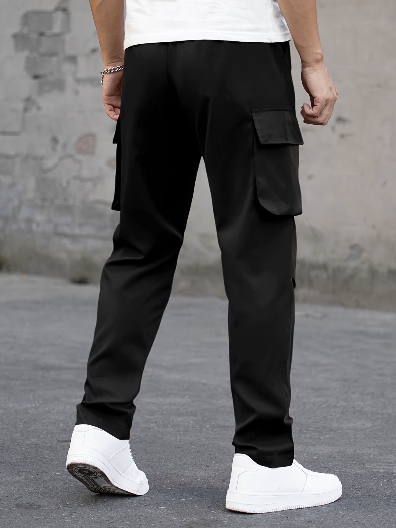 Men's Cargo Pants, Fashionable Casual Workwear, Polyester, Solid Color, Non-Stretch, Regular Fit, Woven Fabric, Novelty Clothing for Men
