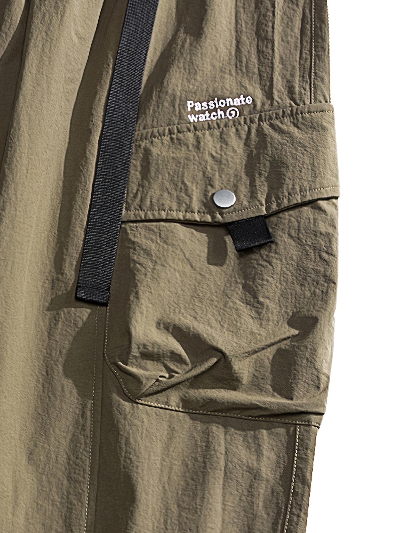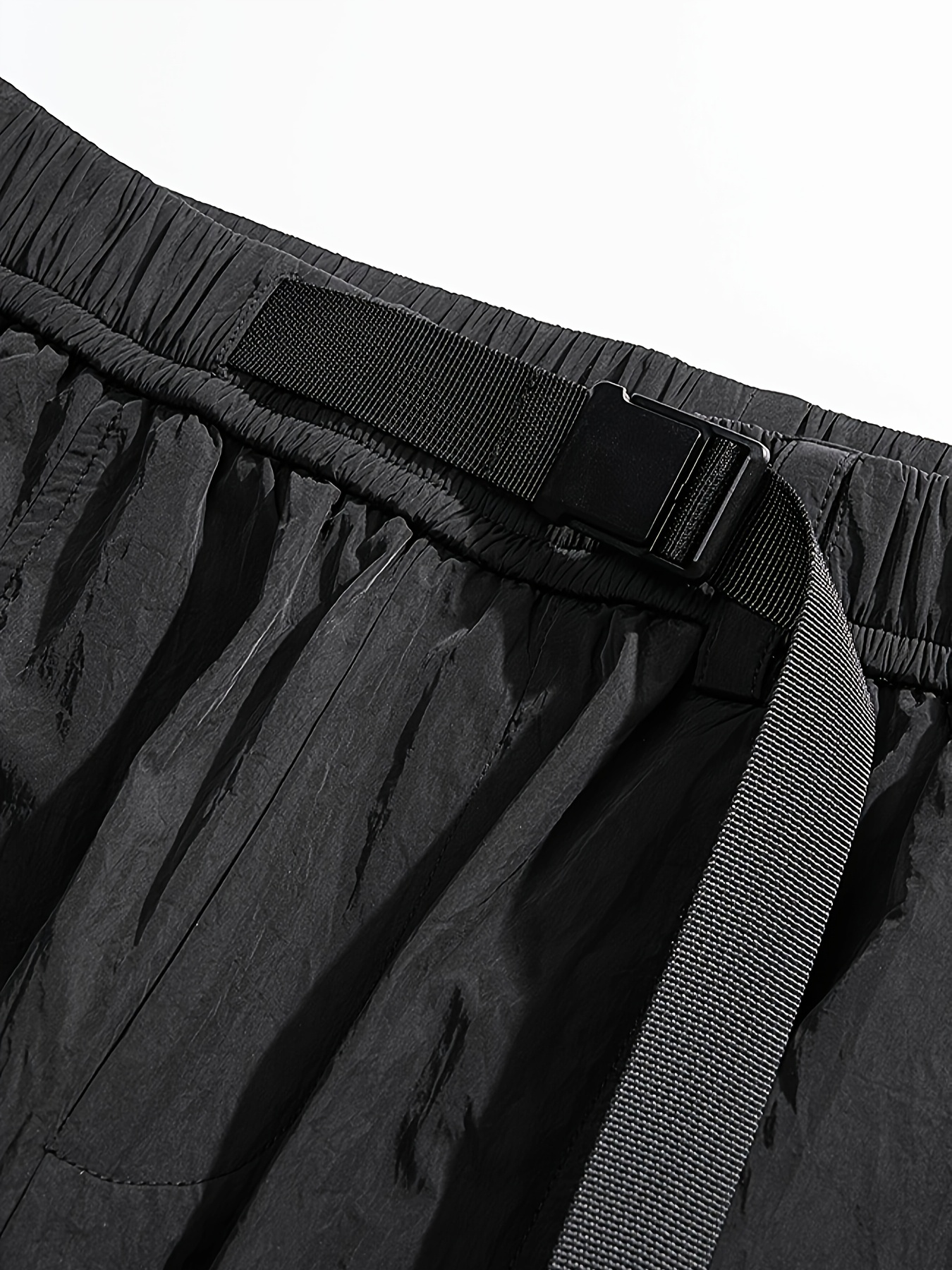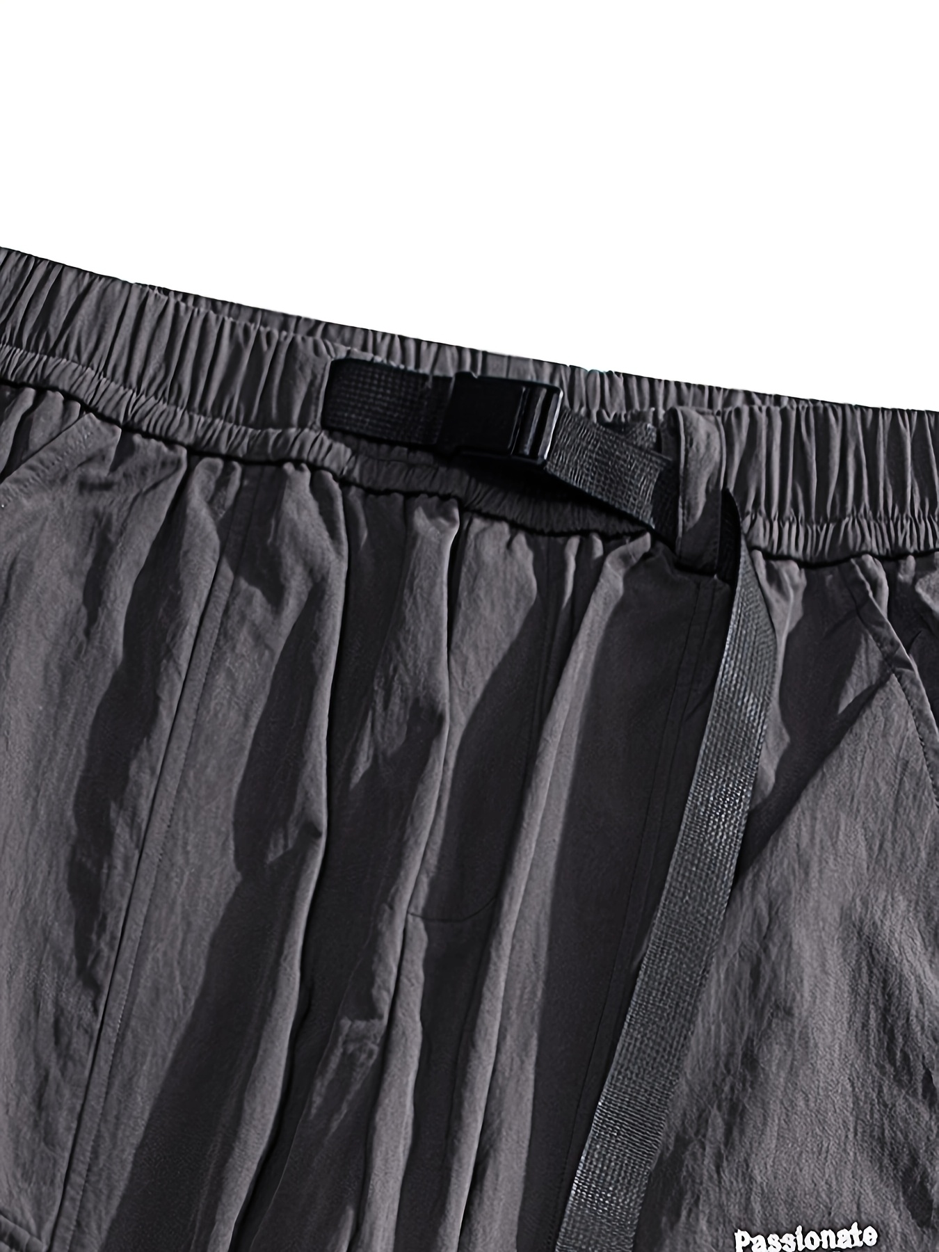 Men's Casual Nylon Cargo Pants with Multiple Pockets - Loose Fit, Solid Color for Spring/Fall