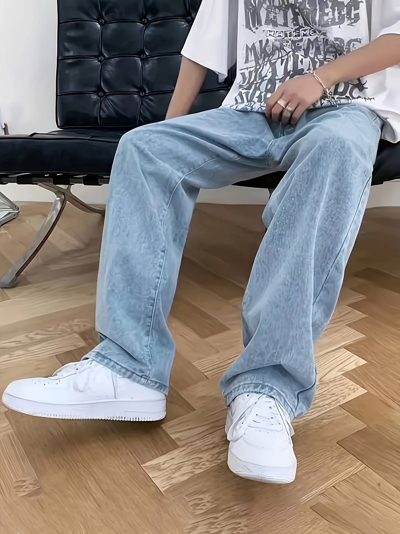 Men's Loose Fit Wide Leg Jeans, Men's Stylish Comfy Denim Pants, Street Style Fashion