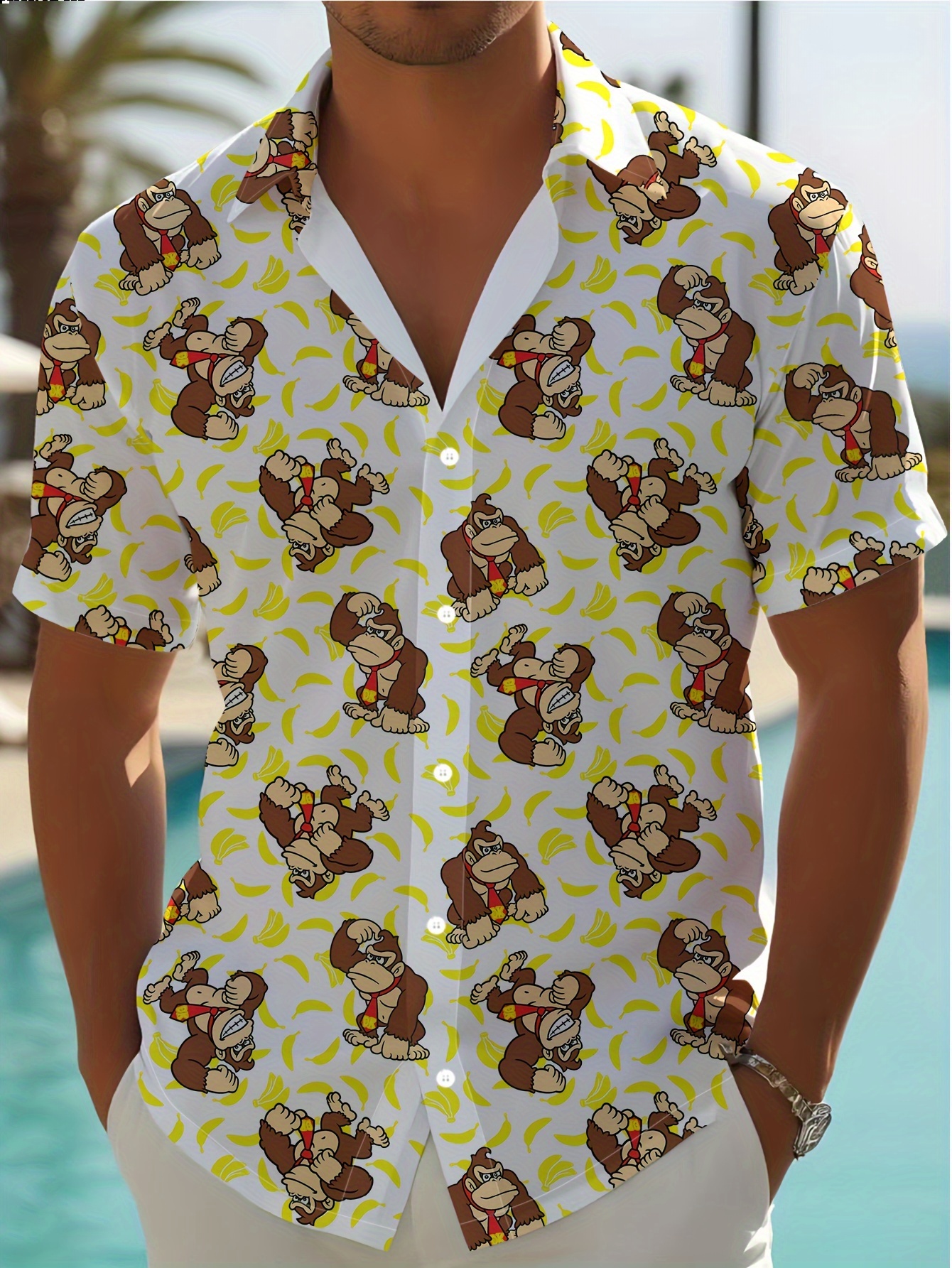 Trendy Collared, Men's Novelty Geometric Print Button-Up Shirt - Casual, Breathable Polyester, Machine Washable