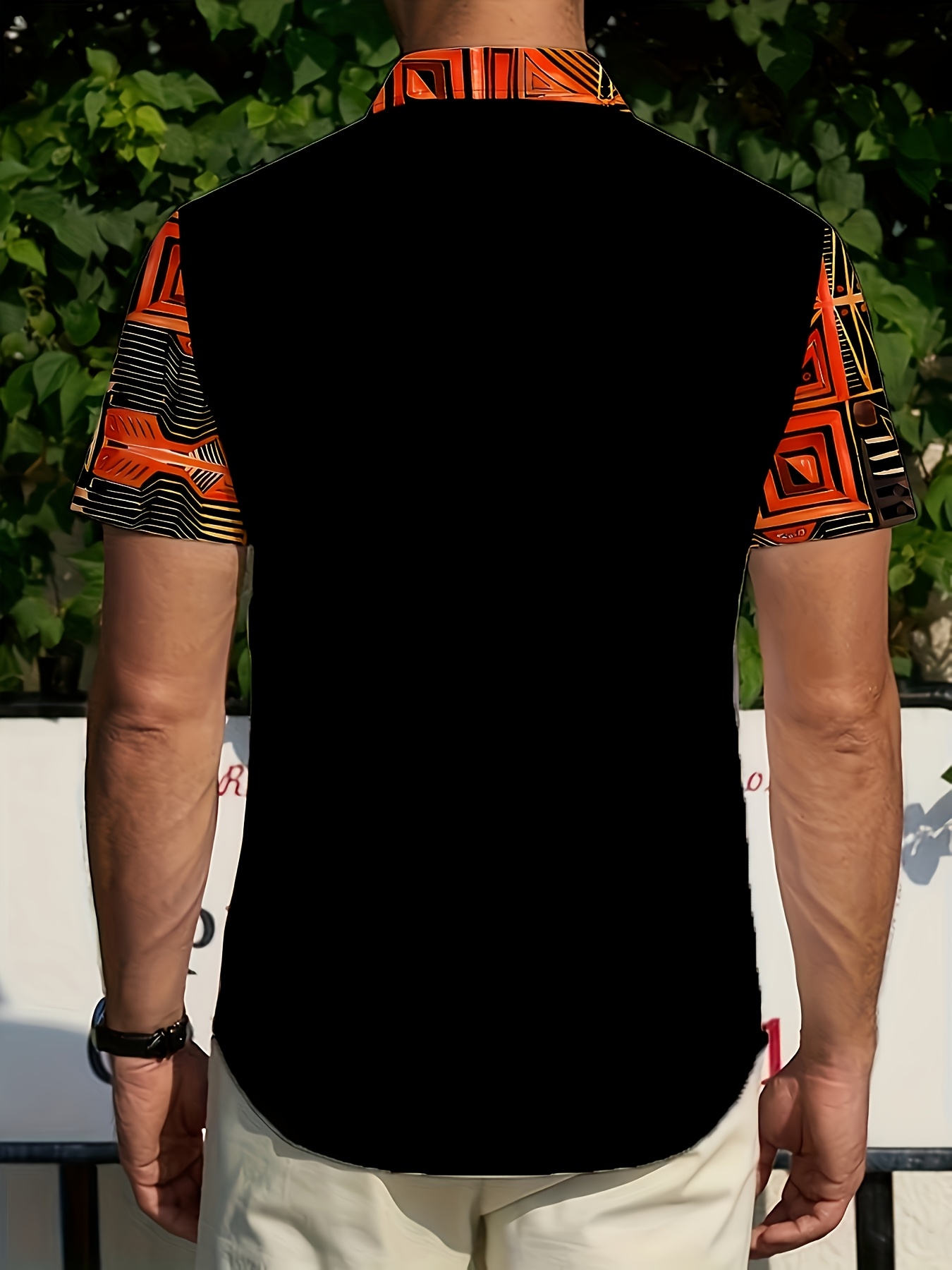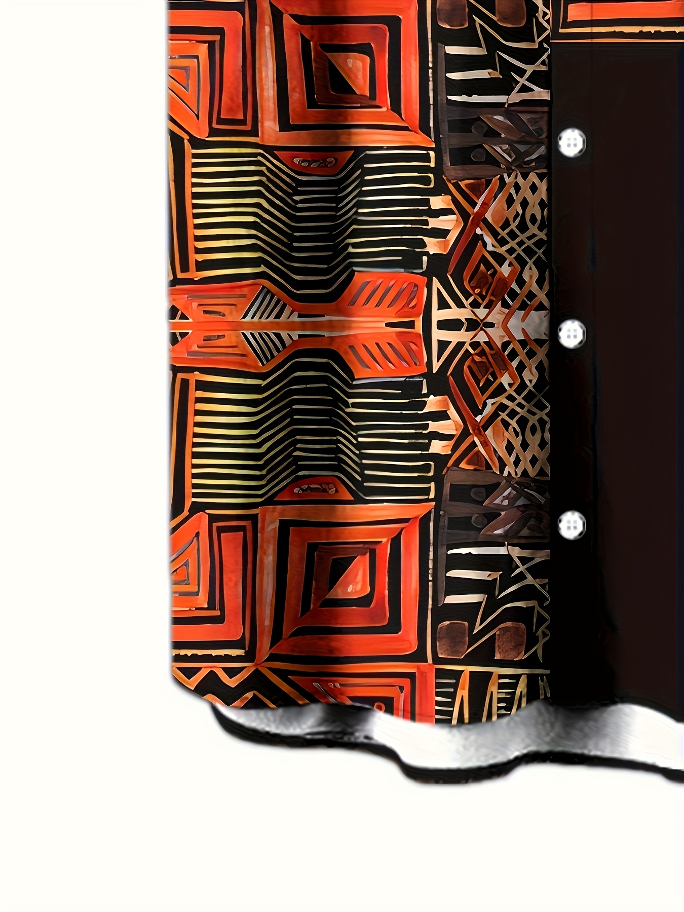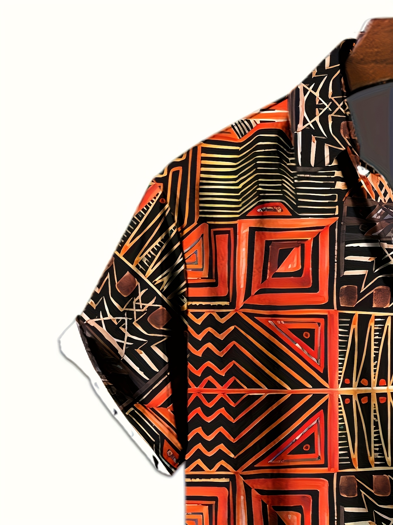 Men's Novelty 3D Geometric Print Button-Up Shirt - Casual, Breathable Polyester, Machine Washable