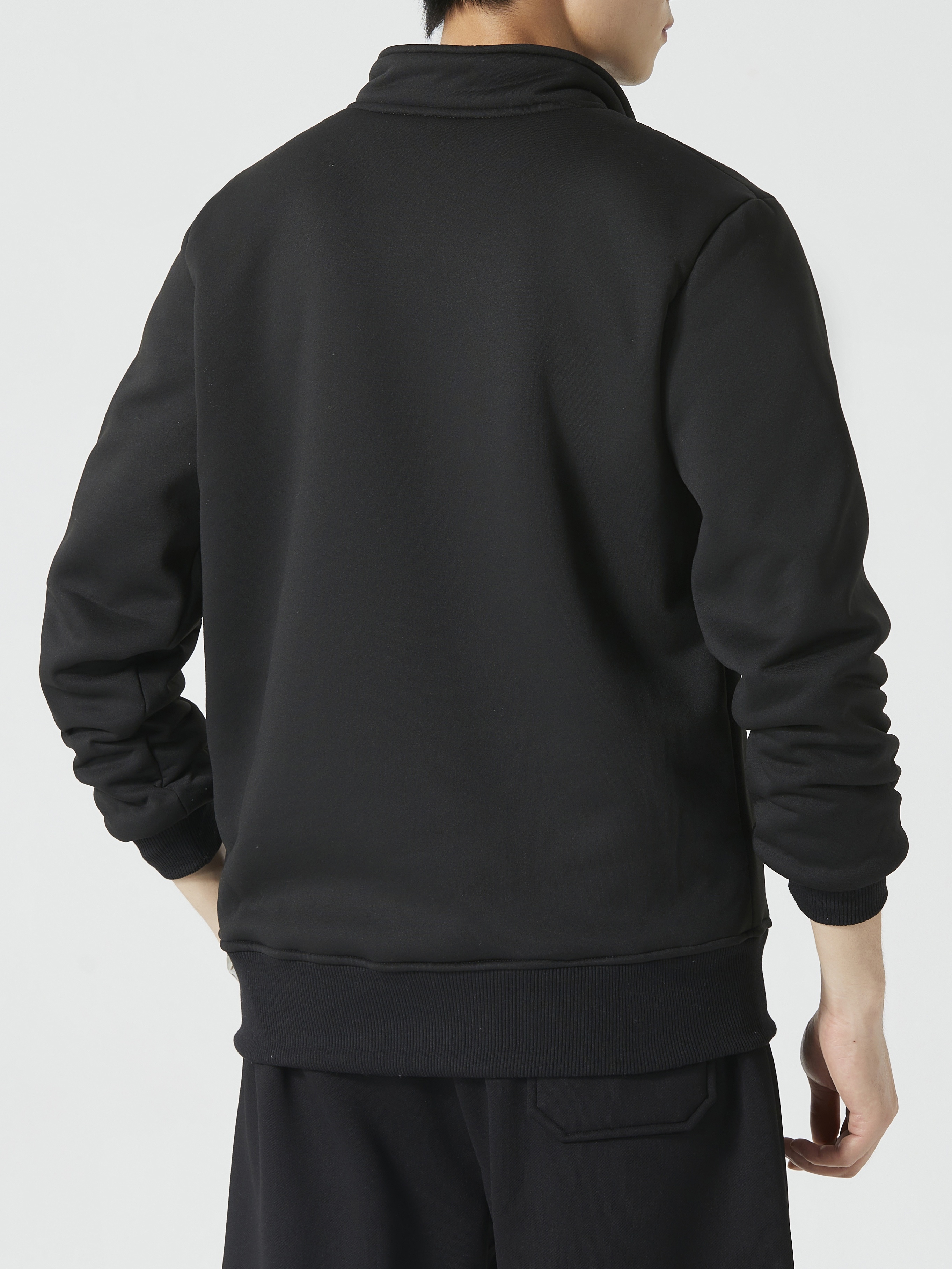 Men's Cozy Fleece-Lined Stand Collar Sweatshirt - Casual Cotton Blend, Long Sleeve Pullover for Fall & Winter
